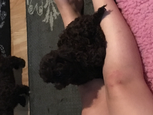 Yksi poika ja neljä tyttöä vapaana. Pentujen äiti on kääpiökokoinen sekarotuinen, ruskea koira jolla karva kasvaa pitkäksi jos ei leikkaa. Emo asuu meillä pentujen kanssa. Isä on maltankoira. Emme suunnitelleet pentuja joten nyt on tärkein...