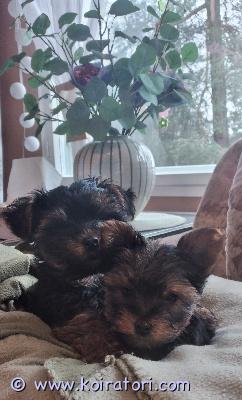 Emo ja pennut ovat tavattavissa sopimuksen mukaan.