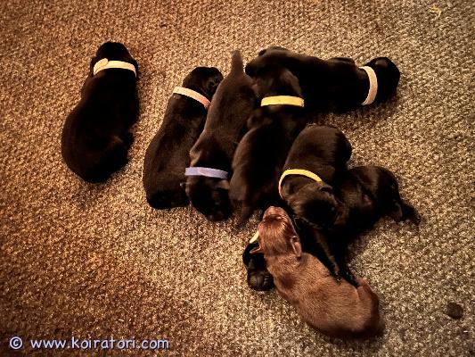 Meidän rakas labbis sai maanantaina 10.11. 8 pentua – 4 tyttöä ja 4 poikaa, joista 1 on ruskea ja 7 mustia. Vaikka luovutukseen on vielä aikaa, haluamme aloittaa perheiden etsinnän hyvissä ajoin.