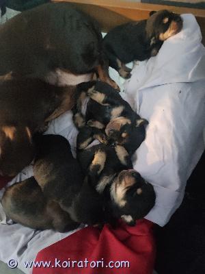 Varattavissa 2 narttua ja kolme urosta. Yksi riistan värinen, vaalenee todennäköisesti soopeliksi.