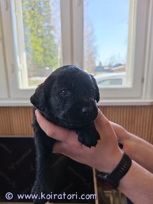 -emä: musta noutaja, kiltti ja tasainen luonne. Paino 25 kg.