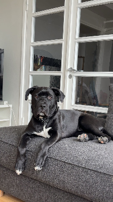 2.11.2025 syntynyt cane corso–labradorinnoutaja mix pentu etsii uutta kotia äkillisen elämäntilanteen muutoksen vuoksi.
